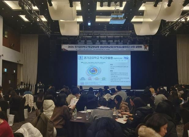 (아름다운교육신문) 경기도성남교육지원청은 5일 밀리토피아호텔에서 관내 초·중·고·특수학교 교원 및 지자체 관계자 등 300여 명이 참석한 가운데 ‘2026 경기공유학교 학교맞춤형 성남미래교육(숲에듀) 사업설명회’를 개최했다.