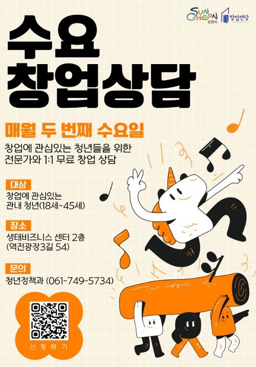 (아름다운교육신문) 순천시가 창업에 어려움을 겪는 청년 창업자와 예비 창업자를 대상으로 '2026년 수요창업상담'을 연중 운영한다.