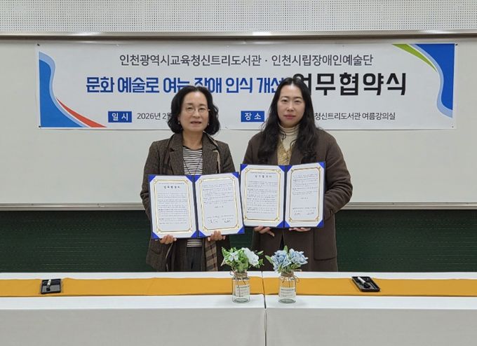 (아름다운교육신문) 인천광역시교육청신트리도서관은 6일 인천시립장애인예술단과 ‘문화예술을 통한 장애 인식 개선 및 포용적 문화 확산을 위한 업무협약’을 체결했다.