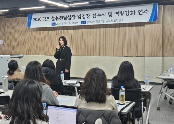 (아름다운교육신문) 경기도김포교육지원청은 2월 10일 2026 늘봄전담실장 25명을 대상으로 임명장 전수식과 함께 초등 방과후·돌봄 교육 운영의 전문성 및 현장 대응 역량 강화를 위한 ‘2026 늘봄전담실장 역량강화 연수’를 실시했다.