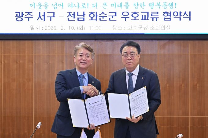 (아름다운교육신문) 광주광역시 서구는 10일 전라남도 화순군청에서 화순군과 우호교류 협약을 체결하고 생활권을 공유하는 이웃 지자체 간 협력과 공동발전을 위한 상생 체계를 구축하기로 했다.