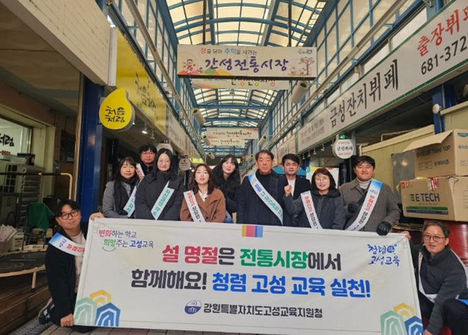 (아름다운교육신문) 고성교육지원청은 설 명절을 앞두고 지역 상권에 활력을 불어넣기 위해 2월 10일(화)과 11일(수) 이틀간 관내 전통시장에서 ‘청렴+(Plus) 나눔 설 명절 전통시장 장보기 캠페인’을 전개한다.