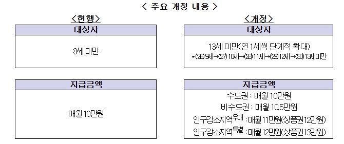 1. 아동수당 지급 대상 확대