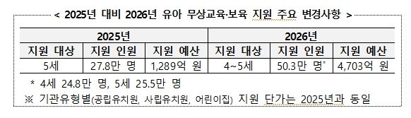 (아름다운교육신문) 교육부는 2026년부터 유아 무상교육·보육 지원 대상을 4~5세로 확대한다.