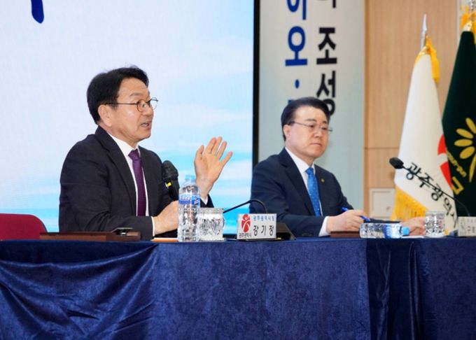 강기정 광주시장은 “통합의 힘은 광주가 화순을 생각하고 화순이 광주를 생각하는 데서 나온다. 어떻게 힘을 모아 상생의 전략을 만들 수 있는가가 핵심이다”며 “통합특별법은 인공지능(AI)·반도체·모빌리티·에너지 특례 등 기업과 관련된 조항이 많은 ‘청년일자리 특별법’인 만큼 이를 통해 기회를 만들고, 청년이 떠나지 않는 특별시를 만들겠다”고 밝혔다.