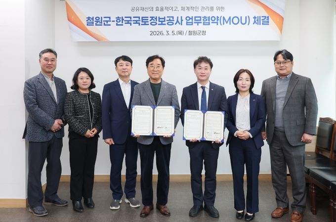 (아름다운교육신문) 철원군은 3월 5일 철원군청에서 한국국토정보공사(LX) 강원지역본부와 ‘공유재산 정밀 실태조사 업무협약(MOU)’을 체결했다.