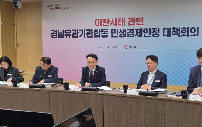 (아름다운교육신문) 경상남도는 최근 이란 사태로 인한 국제 정세 불안과 에너지·금융시장 변동 가능성에 대응하기 위해 6일 도청에서 도내 유관기관이 함께 하는 ‘민생경제안정 대책회의’를 개최했다고 밝혔다.