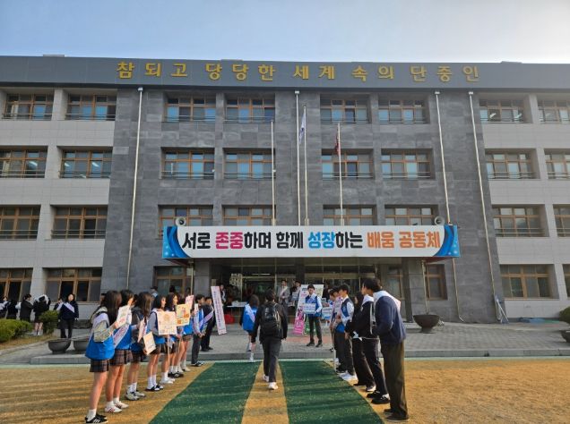 (아름다운교육신문) 충청북도단양교육지원청은 3월 26일(목) 단양중학교에서 생명존중 의식을 높이고 안전한 학교를 만들기 위한 학교폭력 예방 캠페인을 진행했다.