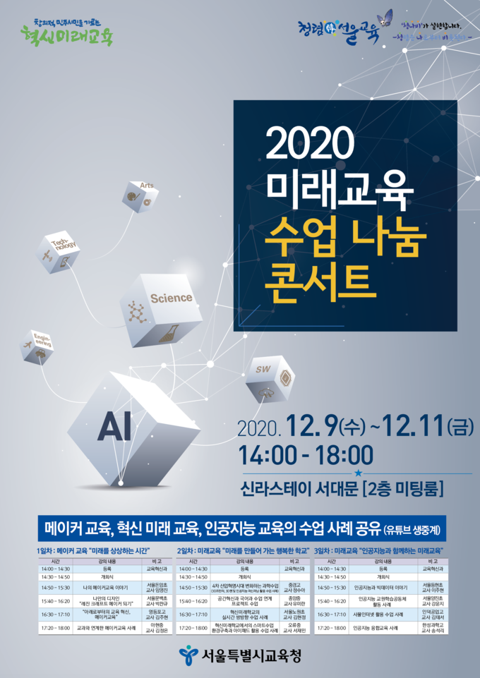 서울특별시교육청은 12월 9일부터 11일까지 「2020 미래교육 온라인 수업나눔 콘서트」를 개최한다.