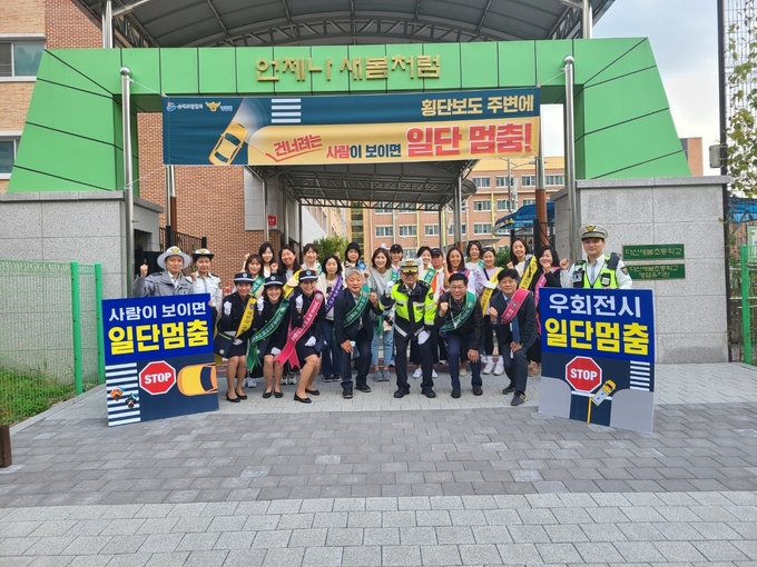 경기도 남양주시에 있는 다산새봄초등학교(교장 김호연)는 10월 6일 다산지구 녹색어머니회 연합 회원, 남양주남부경찰서 직원, 교사들이 함께 「안전한 등굣길 함께 만들어요」 교통안전 캠페인을 실시했다.