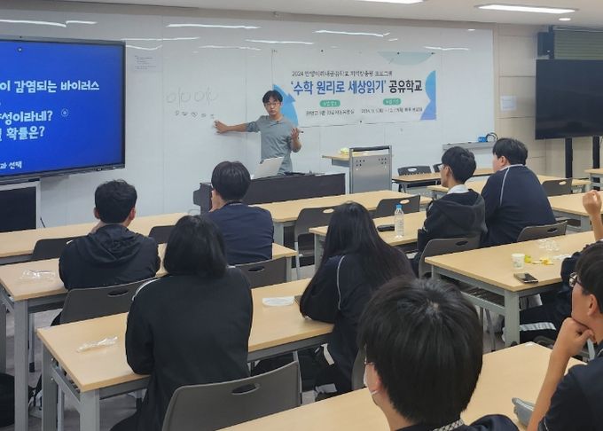 (아름다운교육신문) 경기도안양과천교육지원청은 10월 24일 고등학교 1학년 학생들의 수학 학습 능력 향상을 위해 추진한‘수학원리로 세상읽기’학력향상 공유학교 프로그램을 성공적으로 마무리했다고 밝혔다.