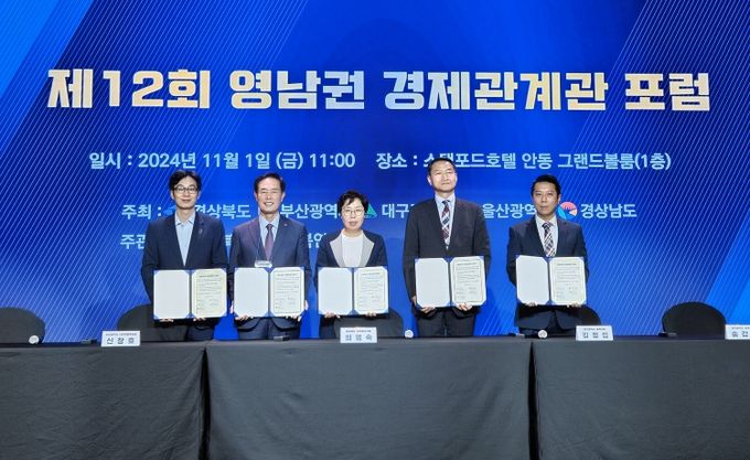 올해 열두 번째를 맞이하는 이번 포럼은 영남권 경제 현안에 대한 발전 방안 논의와 5개 시도의 유기적 협력체계 구축을 위해 마련됐으며, 2024년 공동연구 과제 결과 발표, 전문가 특강, 2025년 공동 과제 주제 발표, 공동 발전 방안 협약서 체결 순으로 진행됐다.