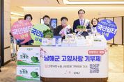 (아름다운교육신문) 장충남 남해군수와 정영란 남해군의회 의장은 지난 26일 부산 롯데호텔에서 열린 ‘재부경남향우연합회 정기총회 및 회장 이취임식’에 참석해 ‘남해군 고향사랑 기부제’를 홍보했다. 장충남 군수와 정영란 의장은 고향사랑기부제의 취지와 혜택을 알리는 한편, 남해군의 고품질 답례품을 소개했다. 장충남 군수는 “남해를 사랑하는 많은 분들의 마음이 하나로 모여 지역의 번영으로 이어지길 바란다”며 “기부금은 군민 복지 증진과 지역활력 회복을 위한 다양한 사업에 소중히 되고 있다”고 밝혔다. 정영란 남해군의회 의장은 “군의회에서도 고향사랑기부제가 성공적으로 정착될 수 있도록 제도적 지원과 홍보에 최선을 다하고 있다”며 “많은분들이 남해군 고향사랑기부제에 관심을 갖고 참여해 주시기를 바란다.”고 밝혔다. 한편, 남해군은 지난해 고향사랑기부제도 시행 이후 최대치인 5억 5000만 원을 기부받았다.
