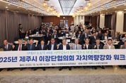(아름다운교육신문) 제주시 이장단협의회는 16일 아젠토피오레컨벤션에서 자치역량강화 워크숍을 개최했다. 이번 행사에는 제주시 7개 읍·면의 이장 90여 명이 한자리에 모여 마을 리더로서의 역량을 강화하고 지역 간 교류와 협력을 확대하는 시간을 가졌다. 1부 행사에서는 임안순 (사)전국농촌체험휴양마을협의회 회장이 강연자로 나서 농촌공동체 활성화를 위한 리더의 역할에 대해 특강을 진행했다. 이어진 2부에서는 지역 발전 유공자에 대한 표창 수여와 함께 지역 간 소통과 화합을 도모하는 자리가 마련됐다. 김재남 제주시 이장단협의회장은 “이번 워크숍을 통해 공통의 비전과 실질적인 발전 대안이 마련되길 기대한다”고 밝혔다. 김완근 제주시장은 “주민과 가장 가까운 곳에서 주민의 어려움을 해소해 주시는 이장님들의 헌신에 늘 감사드린다”고 격려하면서, “이장님들의 세심한 관심과 적극적인 소통이 현장 민원 해소의 밑거름이 되고 있다”며 이장들의 역할을 강조했다.