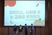(아름다운교육신문) 전라남도진도교육지원청은 12월 9일 진도중학교 체육관에서 '2025 글로컬⁺ R·E 창의융합 발표토론 프로그램(6기) 성과발표회'를 성공적으로 마무리하며, 지난 8월부터 11월까지 진행된 약 3개월간의 창의융합 독서·토론 교육 여정을 공식적으로 마쳤다. 이번 프로그램은 지역 청소년의 인문학적 성찰 능력과 창의융합 사고력, 협력적 의사소통 역량을 기르는 것을 목표로 기획됐으며, 중학생 20여 명이 참여해 소논문 작성, 멘토링, 대면·비대면 캠프, 발표·토론 수업 등 다층적인 교육과정을 수행했다. 성과발표회에서는 프로그램 참여 학생 20명에게 이수증이 수여됐으며, 우수활동팀 2팀과 성실상 수상자 4명에게 교육장상이 전달됐다. 이어 학생들이 직접 탐구한 주제로 발표와 공개 토론이 진행되어 방청석의 학생들과 함께 질문·답변을 주고받는 의미 있는 시간이 마련됐다. 특히 학생들은 ‘지구촌 현안과 세계시민’, ‘과학기술과 인간’, ‘민주주의와 지속가능한 미래’ 등 다양한 주제를 기반으로 자신의 관점과 해결책을 제시해 청중의 큰 호응을 얻었다. 발표에 참여한 한 학생은 “멘토 선배