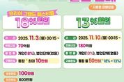 (아름다운교육신문) 포항시는 코리아 그랜드 페스티벌 기간 지역 내 소비 붐업을 위해 내달 3일부터 카드형·모바일 포항사랑상품권을 70억 원 규모로 18% 할인판매를 시작한다. 코리아 그랜드 페스티벌은 이달 29일부터 내달 9일까지 12일간 개최되는 국가 차원의 통합 할인 행사로 제조·유통과 전통시장, 소상공인 업계가 참여한다. 이번 포항사랑카드 특별할인 판매는 기존 할인 혜택 13%에 5%를 추가해 총 18% 할인 혜택이 적용되며, 국비를 추가 확보해 코리아 그랜드 페스티벌과 연계로 진행하는 행사로 지역 내 소비 활성화에 기여할 것으로 기대하고 있다. 또한 시는 내달 3일부터 시작하는 포항사랑카드 70억 원 규모의 18% 할인판매에 이어 내달 10일부터는 180억 원 규모로 13% 할인판매 등 11월에 총 250억 원을 발행해 실질적인 소비 촉진으로 지역 상권 회복과 지역경제 선순환을 이어가겠다는 방침이다. 이번 포항사랑카드 18% 특별 할인판매의 개인 구매 한도는 10만 원이며, 보유 한도는 100만 원이다. 오는 11월 3일 0시 15분부터 모바일 앱(iM샵)에서 충전할 수 있으며, 104개 판