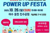 (아름다운교육신문) 여수시는 오는 10월 26일 오후 1시부터 웅천친수공원(예울마루로 37-40) 일원에서 ‘2025 여수시 소상공인의 날 힘업(Power Up) 축제’를 개최한다. 이번 행사는 지역경제 활성화에 기여한 소상공인의 노고를 격려하고 시민과 함께 상생의 의미를 나누기 위해 마련됐으며 여수시가 주최하고 여수시소상공인연합회가 주관한다. 행사에서는 프리마켓, 체험부스, 공연, 표창식 등 다채로운 프로그램이 진행될 예정이다. 개회식은 지역 예술단의 식전 공연을 시작으로 시장 축사, 모범 소상공인 유공자 표창, 기념 촬영 순으로 진행된다. 이어 소상공인 상품 전시·체험 부스와 시민 참여형 이벤트, 축하공연이 열려 지역 상권의 활력을 더할 계획이며 2026여수세계섬박람회 홍보 부스도 함께 운영된다. 여수시 관계자는 “이번 축제는 시민과 소상공인이 함께 호흡하며 지역경제의 활력을 체감할 수 있는 참여형 축제로 꾸며질 것”이라며 “소상공인들이 다시 도약할 수 있는 계기를 마련하고 시민이 함께 응원하는 따뜻한 상생의 장이 되길 바란다”고 말했다.