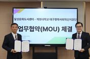 (아름다운교육신문) (재)달성문화재단(이사장 최재훈) 달성문화도시센터는 지난 29일 계명대학교 대구경북사회혁신지원단(단장 신진교)과 업무협약을 체결했다고 밝혔다. 이번 협약은 교육부의 ‘RISE 사업’과 연계해 ‘달성 청년 문화 기획단 지원 과정’을 운영함으로써 지역 청년들의 창의적 문화 활동을 촉진하고, 지역 주민들에게 문화 향유의 기회를 제공하는 것을 목표로 한다. 협약의 핵심 내용은 ▲지역사회의 문화예술 향유 증진 ▲지역 청년의 주체적인 문화 활동 기회 확대 ▲청년들의 문화 활동을 위한 사업 협력 및 지원 등이다. 양 기관은 이를 바탕으로 지역사회 문화 발전을 위해 상호 협력을 약속했다. 이번 협약에 따라 계명대학교 학생들은 지역사회의 다양한 현안을 해결하기 위해 문화적 접근을 시도하게 된다. 총 4가지 문화 사업이 진행될 예정이며, 각 사업은 지역 주민들과의 소통을 중심으로 이루어진다. 첫 번째 사업은 10월 25일과 26일, 달성군의 대표 축제인 ‘YES! 키즈존’에서 진행됐다. 학생들은 아이들을 위한 활력 넘치는 응원 퍼포먼스를 선보이며 축제의 분위기를 고조시켰다. 이어 11