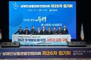 (아름다운교육신문) 여수시는 9일 경남 남해군 쏠비치남해에서 ‘남해안남중권발전협의회 제26차 정기회’가 개최됐다고 밝혔다. 이번 정기회에서는 협의회 회원 시·군이 2026여수세계섬박람회 입장권 사전 구매 약정을 체결하고 ‘2026년 유엔기후변화협약(UNFCCC) 기후주간’ 대한민국 유치 촉구 공동건의문을 채택했다. 입장권 사전 구매 약정에는 순천시와 광양시가 각각 1억 원 규모로 참여했으며, 그 외 시·군은 각 지방정부의 지원 규모에 맞춰 입장권을 구매할 것을 약정했다. 협의회는 지난 11월 17일 ‘2026 섬 방문의 해’ 지정 촉구 공동건의문을 사전 의결로 채택해 행정안전부, 기획재정부, 국회에 전달한 바 있으며 관련 예산(20억 원)이 내년도 정부 예산에 최종 반영되면서 향후 섬 관광 활성화 및 섬박람회 연계 사업 추진이 가능해졌다. 또한 9개 회원 시·군의 뜻을 모아 2026년 기후주간 대한민국 유치 촉구 공동건의문을 채택했다. 기후주간은 당사국총회(COP)에 앞서 기후변화 대응을 논의하는 국제행사로 여수시는 국내 후보지로 최종 선정된 상태다. 여수시 관계자는 “이번 정기회를 통