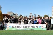 (아름다운교육신문) 박강수 마포구청장은 11월 14일 오전, ‘꿈을 담는 녹색 운동장’ 인조잔디 운동장 개장식이 열린 서울서강초등학교(교장 박왕준)를 찾았다. 이번 개장식에는 학교와 서울서부교육청 관계자뿐만 아니라 축구부 학생과 학부모들까지 참여해 인조잔디 운동장의 탄생을 축하했다. 이날 박강수 마포구청장은 개회식에 참석해 축사를 전하고 테이프 커팅식에 참여했다. 이후 축구부 학생들과 함께 시축 행사를 하며 뜻깊은 시간을 공유했다. 박강수 마포구청장은 “이번 인조잔디 운동장 조성은 서강초등학교와 교육청, 학부모님, 그리고 지역사회가 함께 이루어낸 소중한 결실”이라며 “쾌적하고 안전한 운동장에서 우리 아이들이 마음껏 뛰놀고, 건강한 몸과 마음을 키울 수 있게 되어 매우 기쁘다”라고 말했다. 이어 “‘교육특별구 마포’로의 도약을 선포한 마포구는 성장과 지역사회 협력, 안전과 미래양성, 그리고 상생교육의 5대 핵심 목표를 기반으로 진정한 교육도시로 거듭나겠다”라고 강조했다. 한편, 마포구는 서강초등학교와 ‘미래 축구 꿈나무 발굴·육성 협약’을 맺고 아낌없는 지원을 이어나가고 있으며, 미래세대