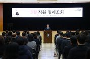 (아름다운교육신문) 충북 괴산군은 3일 군청 대회의실에서 3월 직원조회를 열고 민생안정지원금 신청률 98.4% 달성에 따른 직원들의 노고를 격려하고 봄철 주요 현안업무에 전 행정력을 집중해 줄 것을 당부했다. 송 군수는 “민생안정지원금 신청이 98.4%까지 원활히 마무리된 것은 현장에서 최선을 다해 준 직원 여러분의 노력 덕분”이라며 “군민 한 분도 소외되지 않도록 끝까지 세심하게 살펴 달라”고 말했다. 이어, 3월은 연중 가장 바쁜 시기임을 강조하며 △봄철 산불 예방 및 대응체계 강화 △상반기 신속집행 적극 추진 △2027년 정부예산 확보 전략적 대응 △해빙기 사업장 안전점검 철저 △각종 공사 조기 발주 및 속도감 있는 추진 등을 핵심 과제로 제시했다. 또한, 건조한 날씨로 산불 예방의 선제 대응을 주문했으며 해빙기 안전사고 예방을 위한 사업장 점검과 공사 현장 관리에 만전을 기해 줄 것을 강조했다. 특히, 지역경제 활성화를 위한 상반기 신속집행과 2027년도 정부예산 확보를 위한 중앙부처 대응 등 사전 절차 이행에 전 부서가 힘을 모아 줄 것을 당부했다. 다가오는 6월 3일 지방선거