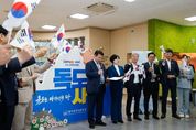 (아름다운교육신문) “독도는 역사적, 지리적, OOO적으로 명백한 우리 고유의 영토입니다. OOO 안에 들어갈 정답은 무엇일까요?” “정답! ‘국제법‘입니다” 24일 광주시교육청 1층 북카페. 사회자가 퀴즈를 내자마자 이정선 교육감을 비롯한 직원들이 앞다퉈 정답을 외치는 이색 풍경이 연출됐다. 시교육청이 25일 ‘독도의 날’을 앞두고 ‘독도 사랑 퀴즈’를 진행한 것이다. 이번 행사는 우리의 영토인 독도의 의미를 되새기고 수호 의지를 높이고자 마련됐다. 이어 열린 ‘독도 수호 결의대회’에서는 최승복 부교육감이 고종 황제가 독도가 우리 영토임을 명시한 ‘대한제국 칙령 제41호’를, 이정선 교육감이 ‘독도 수호 결의문’을 낭독하며 모든 직원이 독도 수호의 의지를 다지는 시간을 가졌다. 앞서 시교육청은 20~24일을 독도 교육 주간으로 지정하고, 광주지역 모든 학교에서 체험 중심의 독도 교육을 실시하도록 안내했다. 또 22~24일에는 본청 1층에 촛대바위, 일몰 등 독도 주변과 울릉도에서 바라본 독도, 독도 법령, 독도 연표 등이 전시된 사진과 초등학교 학생들이 독도를 사랑하는 마