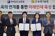 (아름다운교육신문) 전라남도교육청은 10월 14일 청사 5층 비지니스실에서 전라남도 농업기술원(원장 김행란)과 ‘농업과 교육의 연계를 통한 미래인재 육성 업무협약’을 체결했다. 이번 협약은 농업·농촌의 다양한 자원을 교육과 연계해 학생들이 체험 중심으로 배우고, 생태 감수성과 창의 역량을 키울 수 있도록 지원하기 위해 마련됐다. 이번 협약에 따라 양 기관은 ▲ 농촌교육농장과 치유 농장을 활용한 체험교육 확대 ▲ 늘봄학교 운영과 연계 가능한 프로그램 제공 ▲ 생태 기반 창의 교육, 진로, 창업 체험처 발굴 및 정보 제공 ▲ 지속가능한 농촌교육 모델 구축 등에 힘을 모으기로 했다. 양 기관은 협약 내용을 바탕으로, 각급 학교와 교육지원청이 쉽게 활용할 수 있는 프로그램을 발굴하고 현장 체험 중심 교육 자료를 개발할 예정이다. 또한 교원 연수와 교육공동체 협력 네트워크를 운영해 농업·농촌 자원을 효과적으로 교육 현장에 적용할 수 있도록 지원할 방침이다. 아울러, 농촌교육농장의 교육적 활용도를 높이고, 지역 농업과 연계한 미래형 교육 모델을 확산할 계획이다. 학생들은 이를 통해 생