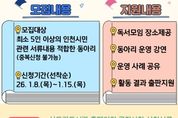 (아름다운교육신문) 인천광역시교육청신트리도서관은 시민 주도의 자율적인 독서 활동을 지원하고 생활 속 독서문화를 확산하기 위해 '2026년 자율독서동아리 지원사업'의 동아리를 모집한다. 지원사업은 인천 지역의 자발적 독서동아리를 대상으로 연중 운영되며, 인천 시민 또는 지역 내 직장인 등 5인 이상으로 구성된 독서동아리 중 30개 내외를 선정한다. 선정된 동아리에는 도서관 내 동아리실과 강의실 등 모임 공간이 제공되며 6만원 이내의 활동 도서를 지원한다. 자율독서동아리 모집은 8일부터 15일까지며, 참여 희망 동아리는 신청서를 작성해 이메일로 제출하면 된다. 자세한 사항은 신트리도서관 누리집 공지사항을 확인하거나 독서문화과로 문의하면 된다.