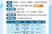 (아름다운교육신문) 인천광역시교육청은 1월 14일부터 28일까지 2주간 신설학교 8교의 명칭을 공모한다. 명칭을 공모하는 신설교는 ▲연수구 (가칭)아라5유치원, (가칭)아라5초, (가칭)해양2중, (가칭)첨단1고, (가칭)해양3고 ▲미추홀구 (가칭)용현학익유치원, (가칭)용현학익1초 ▲서구 (가칭)청라4고로 총 8교이며, 이 중 아라5유치원, 아라5초는 2027년 9월 개교 예정이고 나머지 학교는 2027년 3월 개교 예정이다. 인천시교육청 누리집에서 누구나 공모에 참여할 수 있으며 정식 명칭은 교명선정위원회 심사와 교명자문위원회 자문, 교명심의위원회의 심의를 거쳐 인천시의회 조례 개정 후 오는 7월경 확정될 계획이다. 인천시교육청 관계자는 “앞으로도 교명 선정 과정에서 법적 ‧ 행정적 절차를 준수할 뿐 아니라 학생, 학부모, 지역사회 구성원의 참여를 보장하고 의견을 개진할 수 있도록 적극 노력하겠다”고 말했다.