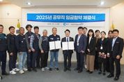 (아름다운교육신문) 춘천시 환경미화원과 일반공무직의 임금이 인상된다. 육동한 시장은 14일 시청 접견실에서 전국자치단체공무직본부 춘천시지부(지부장 박훈주)와 2025년 임금협약을 체결했다. 주요 협약 내용으로는 △일반공무직 본봉 및 정근수당 지급률 인상 △환경공무직 본봉 3.0% 인상 △환경공무직 조장수당 신설 △민원수당 지급 대상 추가 등이 담겼다. 노사 양측은 지난 7월부터 7차례 교섭을 통해 이같은 내용을 담은 임급협약에 최종 합의했다. 적용 대상은 비조합원까지 포함한 전체 공무직 근로자로 2025년 소급분은 11월 안으로 지급한다. 일반공무직의 경우 본봉 1.7% 인상과 정근수당 지급률 인상을 통해 본봉 3.15% 인상이 되는 효과가 있다. 육동한 춘천시장은 “이번 임금 인상이 근로자의 사기 진작과 안정적인 근무 환경 조성으로 이어지길 바란다”고 말했다.