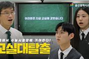 (아름다운교육신문) 울산광역시교육청은 대학수학능력시험을 앞두고 수험생을 응원하는 영상을 제작해 6일 울산교육청 유튜브에 공개했다. 10분 40초 분량의 영상에는 천창수 교육감과 함월고등학교 3학년 학생 2명이 함께 출연해, 교실을 배경으로 임무를 수행하며 따뜻한 응원 메시지를 전한다. 영상은 ‘교실 탈출’이라는 주제로 방 탈출 게임 형식으로 구성됐다. 교실 안에서 주어진 문제를 단계적으로 해결해 교실을 탈출하는 방식으로, 교육감과 학생들이 협동해 문제를 풀어나간다. 영상의 도입부는 ‘오늘은 11월 13일 목요일, 대학수학능력시험일입니다. 여러분은 지금 교실에 갇혔습니다. 주어진 문제들을 해결해 교실을 탈출하세요!’라는 안내로 시작해 몰입감을 높인다. ‘수능 당일 가장 피해야 할 행동은?’ 등 수능 상황 관련 내용이 출제된다. 참여자들은 수험표, 신분증, 아날로그 시계, 도시락 등 수능 필수 준비물을 실제로 활용해 정답을 찾는 과정이 담겨 있다. 학생들은 문제를 풀며 사물함 비밀번호 단서를 모으고, 자물쇠를 열어 수험생에게 전하는 편지를 찾으면 다음 단계로 나아