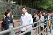 (아름다운교육신문) 이상일 용인특례시장은 2일 오전 수지구 죽전로 대청초등학교 사거리 횡단보도에서 등교시간에 맞춰 진행된 어린이 교통지도 봉사에 참여하고 학교 주변통학로를 둘러보며 일부 시설 개선을 지시했다. 이 시장은 이날 원종태 대청초 교장, 학부모회·녹색어머니회 회원, 학생 등 30여 명이 함께해 교통사고 예방과 안전한 통학로 만들기 캠페인도 벌였다. 이 시장은 학부모들과 함께 통학로 주변을 둘러보며 시설을 점검하면서 ▲대청초 후문 좁은 인도에 풀이 우거져 보행을 방해하는 화단과 파손된 보도블록 정비 ▲인도와 차도의 경계가 없는 구간 볼라드 설치 ▲진흥더블파크 옆 가파른 경사와 급커브 구간 방지턱 추가 설치 ▲학교 주변 일부 보도블럭 교쳬 등을 지시했다. 이 시장은 학교 부근 사거리에서 교통 사고 방지와 보행 안전을 위한 교통지도 활동을 학부모들과 함께 하기도 했다. 이상일 시장은 “학생들이 안전하게 등교할 수 있도록 봉사해 주시는 녹색어머니회 회원님들과 학부모님들께 감사인사를 드린다”며 “시는 앞으로도 학교 주변의 통학 환경 개선읕 위한 노력을 계속 기울이겠다”고 말했다. 이 시