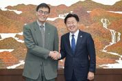(아름다운교육신문) 제주특별자치도는 제주경제의 정밀 진단과 실효성 있는 정책 수립을 위해 한국은행과 협력체계를 구축한다. 오영훈 지사는 9일 오후 서울 한국은행 본점에서 이창용 한국은행 총재를 만나 제주 지역경제 분석의 정확도를 높이기 위한 한국은행과의 협력 방안을 제안했으며, 한국은행 측은 방법론과 기초자료 제공 등 기술적 지원을 검토하겠다고 밝혔다. 현재 지역산업연관표는 매출액 규모가 큰 사업체 중심의 표본조사 결과를 전국 단위로 배분하는 장식으로 작성되고 있다. 그러나 이 방식은 제주지역의 산업 투입 구조와 역외 거래 특성을 충분히 반영하지 못한다는 한계가 있다. 관광산업 중심의 제주 산업구조는 전국 평균과 상이한 특성을 보이기 때문에, 실측조사를 통해 제주 실정에 맞는 산업연관표를 작성하면 보다 정밀한 경제 분석이 가능하고, 이를 바탕으로 합리적인 정책 수립도 가능해진다. 오영훈 지사는 이날 면담에서 “지역경제 구조를 정밀하게 분석하기 위해서는 세밀한 접근이 필요하다”며 “이 과정에서 한국은행과 의미 있는 협업 사례가 만들어지길 기대한다”고 말했다. 또한 “제주에서 추진 중인 분