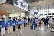 (아름다운교육신문) 순천시는 2일 순천역 광장에서 추석을 맞아 고향을 방문하는 귀성객과 관광객을 대상으로 환영 행사와 시정 홍보활동을 펼쳤다. 이번 행사는 일류순천시민운동본부, 자생단체, 읍면동 주민 등 500여 명이 함께 참여한 가운데 귀성객 환영 공연과 자원봉사자들의 차나눔으로 고향을 찾은 귀성객들에게 넉넉한 한가위의 정을 전했다. 이날 행사에서는 여수MBC 순천 이전 협약, 코스트코 입점 확정 등 지역의 호재를 알리며, 순천의 3대 경제축(문화·우주·바이오 산업)을 기반으로 ‘치유의 도시 순천’으로 도약하는 미래 비전을 공유하는 계기를 마련했다. 노관규 시장은 “추석을 맞아 고향을 찾은 향우 여러분께서 순천의 변화된 모습을 보며 큰 자부심과 에너지를 얻어가시길 바란다”고 말했다. 한편, 순천시는 연휴 7일 동안 재난·안전, 교통편의, 관광 대책 등 8개 분야의 대시민 서비스 계획을 가동하고 종합상황실(061-749-5459) 운영을 비롯해 비상근무체제를 유지한다.