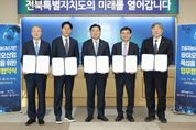 (아름다운교육신문) 전북특별자치도가 인공지능과 바이오산업을 융합한 지역 신성장 동력 확보에 나섰다. 도는 6일 도청에서 한국기계전기전자시험연구원, 범부처통합헬스케어협회, 전북대학교, 원광대학교 등 5개 기관과 'AI 기반 바이오 산업 육성'을 위한 업무협약을 체결했다. 이날 협약식에는 김관영 도지사를 비롯해 안성일 한국기계전기전자시험연구원장, 심기준 범부처통합헬스케어협회장, 양오봉 전북대 총장, 박성태 원광대 총장이 참석했다. 이번 협약을 통해 참여 기관들은 ▲AI 기반 바이오 산업 생태계 조성을 위한 사업 발굴과 공동 추진 ▲AI 기술을 활용한 연구·산업 기반 구축 ▲산·학·연 협력을 통한 전문인력 양성 및 산업화 지원 등의 협력 체계를 구축해 나갈 계획이다. AI 기반 바이오 산업의 신뢰성과 안전성, 사이버보안 지원체계 구축에도 힘을 쏟는다. 도는 이번 협약을 계기로 AI와 바이오산업이 융합된 지능형 바이오 생태계를 조성해 지역 경제의 미래 먹거리로 발전시킨다는 방침이다. 한국기계전기전자시험연구원은 기계·전기·전자·의료 등 전 분야 시험인증 전문기관으로 약 700명의 인력을 보유하고 있다. 범부