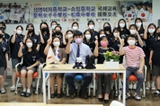 성명여자중학교(교장 배익홍)는 5월 30일(월), 일본 고베시의 쇼잉중학교(松蔭中学校)와 ‘온택트 국제교류’를 진행했다. 성명여자중학교와 쇼잉중학교는 2016년부터 자매 결연을 맺고 해마다 국제교류를 진행해 왔지만, 코로나19 등의 어려움으로 인해 최근 3년간 교류 활동이 중단되었다. 그리고 상황이 어느 정도 안정된 올해부터 비대면으로 교류 활동을 재개해 내년에는 방문 교류를 시행할 예정이다. 국제교류 활동은 ‘새로운 친구를 만들자(新しい友だちを作ろう)’라는 주제로 ZOOM 프로그램을 활용해 실시간 쌍방향 온라인 교류 형태로 진행되었다. 성명여자중학교의 국제교류 동아리 부원 20명과 쇼잉중학교 학생 중 한국과 한국어에 관심이 많은 학생 36명이 참여했으며, 시교육청 국제교류 학부모 통역단의 지원에 힘입어 열심히 공부한 각국의 언어로 대화를 나눴다. 특히, 올해 성명여자중학교와 쇼잉중학교는 각각 개교 120주년, 130주년을 맞이해 서로의 기념적인 해를 축하하는 시간도 가졌다. 또한, 모둠별 활동 후 구글 프레젠테이션을 활용해 함께 교류한 활동을 기록했다. 행사에 참여한 성명여중 홍지아 학생은 “일본 친구들과 SNS 계정도 교환했다”며 “앞으로도 꾸준히 연락하