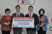 (아름다운교육신문) 울산 강남교육지원청은 연말연시를 맞아 29일 울산사회복지공동모금회에 이웃사랑 나눔 성금 379만 원을 전달했다. 울산사회복지공동모금회에서 열린 전달식에는 임채덕 교육장을 비롯해 양호영 울산사회복지공동모금회 사무처장 등이 참석했다. 강남교육지원청은 해마다 희망 직원을 대상으로 매달 급여에서 ‘작은 사랑의 씨앗’으로 일정 금액을 공제해 성금을 모았다. 강남교육지원청은 2014년부터 사회복지단체에 기부하며 지역사회와 상생하는 나눔 문화를 실천하고 있다. 임채덕 교육장은 “연말을 맞아 직원들의 따뜻한 마음을 모아 지역사회에 온정을 전하고자 했다”라며 “앞으로도 교육공동체의 사회적 책임을 실천하며 지역사회와 함께 성장하는 나눔 활동을 이어가겠다”라고 말했다.
