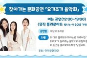 (아름다운교육신문) 인천광역시교육청화도진도서관은 10월 25일 오후 12시 30분, 평생학습1실에서 찾아가는 문화공연 ‘요기조기 음악회’를 개최한다. 이번 공연은 인천문화재단이 주관하는 ‘삶의 일상 공간 예술화 프로젝트’의 일환으로 문화와 예술이 일상이 되는 즐거운 도시 인천을 구현하기 위해 마련됐다. 공연에는 ‘아침의 트리오’가 참여해 두 대의 플루트와 한 대의 피아노로 구성된 편안하고 싱그러운 음악을 선보일 예정이다. 참여 신청은 10월 15일 오전 9시부터 화도진도서관 누리집에서 가능하며 자세한 사항은 화도진도서관 독서문화과로 문의하면 된다.
