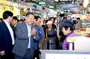 (아름다운교육신문) 김경일 파주시장은 지난 1일 추석 명절을 앞두고 금촌전통시장과 문산자유시장을 찾아 상인들과 시민들을 만나며 따뜻한 명절 분위기를 조성했다고 밝혔다. 김 시장은 지역화폐(파주페이)로 각종 물품을 구매하며 상인들을 격려했으며, 지역경제 활성화를 위한 민생회복 소비쿠폰 2차 지급에 시민 모두가 빠짐없이 신청해 줄 것과 9월 15일부터 무제한 할인쿠폰을 제공하고 있는 공공배달 앱 ‘배달특급’의 적극적인 이용을 부탁하며 지역경제 현장의 목소리를 청취했다. 김경일 파주시장은 “어려운 경기 여건 속에서도 항상 같은 자리에서 꿋꿋이 일하고 있는 소상공인들이야말로 지역경제의 버팀목”이라며 “소비 위축과 고물가·고금리로 어려움을 겪는 소상공인을 돕고 지역경제 활성화를 위해 최선을 다하겠다”라고 말했다. 파주시는 장기화된 경기 침체 속 민생경제 안정을 위해 올해 전국 최대 규모인 3,189억 원의 파주페이를 발행했다. 특히 올해 설(2월)과 가정의 달(5월)에 이어 추석이 있는 10월에도 파주페이 충전한도를 최대 100만 원으로 확대해 시민의 가계 부담 경감에 힘쓰고 있다.