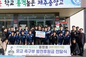 (아름다운교육신문) 제주도교육청 제주중앙고등학교는 18일 본교 출신인 프로축구 홍정호 선수(전북 현대 모터스)가 모교를 방문하여 학교 발전 기금 500만 원을 기탁했다고 밝혔다. 홍정호 선수는 후배들의 교육 환경 개선과 학교 발전을 위해 기금을 직접 전달하며 모교에 대한 애정과 응원의 뜻을 전했다. 홍정호 선수는 제주중앙고 재학 시절 축구 선수의 꿈을 키웠으며 이후 국가대표 수비수로 성장해 국내외 무대에서 활약 중이며 특히 바쁜 일정 속에서도 직접 모교를 찾아 나눔을 실천하며 졸업생으로서 귀감이 됐다. 제주중앙고 관계자는 “졸업생인 홍정호 선수가 모교 발전을 위해 뜻깊은 기탁을 해준 것에 감사드린다”며 “기탁금은 학생들의 학습 환경 개선과 다양한 교육 활동 지원을 위해 소중하게 사용하겠다”고 밝혔다. 양정규 교장은 “이번 기탁은 재학생들이 선배의 활약상을 통해 자긍심을 고취하고 꿈을 향한 도전과 사회적 책임이라는 가치를 직접 체득하는 뜻깊은 계기가 될 것으로 기대한다”고 밝혔다.
