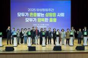(아름다운교육신문) 경북 울릉군여성단체협의회장(회장 박선옥)는 지난 14일 한마음회관 대공연장에서 남한권 울릉군수, 이상식 울릉군의회 의장을 비롯한 기관단체장 및 사회단체장 등 300여명이 참석한 가운데 2025년 양성평등주간 기념행사를 가졌다. 올해 울릉군여성단체협의회가 주최·주관하고 울릉군이 후원하는 양성평등주간 기념식은 “모두가 존중받는 성평등 사회 모두가 행복한 울릉”이라는 주제로 개최됐으며, 실질적인 양성평등 이념을 구현하고 그 의미를 널리 알리기 위해 매년 진행되고 있다. 행사내용은 각 단체회장 소개, 양성평등 유공자 시상, 개회식에 이어 모두가 행복한 양성평등문화 확산을 위해 결의문 낭독과 주제 퍼포먼스를 진행했으며, 양성평등 주제 강연에는 김재롱 씨가 출연하여 성평등 이야기를 쉽고 유쾌하게 풀어 시민들과 공감대를 나눴다. 이날 양성평등 문화확산에 이바지 한 유공자 표창에는 양성평등 유공자 표창(울릉군수상 박정미, 울릉군수상 홍경민, 군의회의장상 이현자), 양성평등 부부상(아이코리아울릉군지회 회장 최윤정, 권정식 부부)이 수여됐다. 박선옥 회장은 개회사에서 “양성평등은 모두가 함께 만들