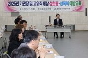 (아름다운교육신문) 인천 동구는 지난 3일 구청 소나무홀에서 5급 이상 간부 공무원을 대상으로 성희롱·성폭력 예방 교육을 실시했다고 밝혔다. 이번 교육은 건강한 공직문화를 조성하고 공무원들의 성인식 개선을 위해 마련됐다. 홍의섭 한국양성평등교육진흥원 강사는 최근 불거지고 있는 딥페이크 등 디지털 성범죄에 대한 사례와 직장 내 성희롱 사례를 예로 들며 성희롱·성폭력 근절을 위한 예방 및 실천 방안에 대하여 교육했다. 김찬진 동구청장은 “간부 공무원의 말과 행동은 동구청 공무원 조직에 큰 영향을 미칠 수 있다”며 “항상 존중하고 배려하는 언행으로 조직 내에서 솔선수범해 주길 바란다”고 말했다. 한편, 동구는 올해 상반기 전직원을 대상으로 4대 폭력 예방교육을 실시했다.