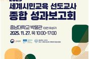 (아름다운교육신문) 교육부는 유네스코아시아태평양국제이해교육원(원장 임현묵)과 함께 11월 27일 충남대학교 박물관에서 2025년 세계시민교육 선도교사 종합 성과보고회를 개최한다. 이번 성과보고회는 '2015 인천 세계교육포럼' 이후 10년간 학교 현장에서 세계시민교육 확산을 위해 노력한 선도교사들의 노력과 성과를 되돌아 보고, 2030년을 향한 새로운 미래 비전을 공유하는 자리로 마련됐다. 오전에는 '실천과 성찰, 걸어온 길을 나누다'를 주제로 중앙 선도교사들이 지역 특성에 따라 추진한 다양한 세계시민교육 활동을 발표하고, 전달 연수와 자료 개발 등 성과 확산을 위해 노력한 과정을 소개한다. 오후에는 '비전과 변화, 함께 갈 길을 그리다'를 주제로 ‘인공지능(AI) 도구 활용 지속가능개발목표(SDGs) 연구모임’, ‘에듀무비 공작소’ 등 교사들이 자발적으로 구성한 2025 중앙연구회 분과 연구모임의 결과 발표가 이어진다. 또한, '비전 대화: 2030 세계시민교육을 그리다'를 주제로 하는 의견 나눔의 순서도 운영된다. 소집단 토의 등을 통해 세계시민교육이 학교와 사회에 가져온 변화를 확인하고, 세계