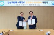 (아름다운교육신문) 통영시는 경상국립대학교(총장 권진회)와 함께 지역 유일의 대학인 해양과학대학의 교육·연구 기반 강화와 운영 활성화를 위해 경상국립대학교 가좌캠퍼스 중앙도서관 6층 회의실에서 ‘통영시·경상국립대학교 상생발전을 위한 업무협약’을 25일 체결했다. 이날 협약식은 천영기 통영시장, 권진회 경상국립대총장, 문성주 해양과학대학장을 비롯해 통영시와 경상국립대학교의 주요 간부급 인사들이 대거 참석한 가운데, ▲식전 차담 ▲홍보영상 상영 ▲기관장 인사 말씀 ▲업무협약 서명 ▲기념촬영 순으로 진행됐다. 이번 협약은 해양과학대학의 교육·연구 기능 등을 강화해 지역사회를 활성화하고, 대학 인근 상권 침체 등 지역의 위기를 선제적으로 극복하기 위해 마련됐다. 주요 내용으로는 ▲해양과학대학 주변 정주환경 개선을 위한 ‘협력 플랫폼’ 구축·운영 ▲대학 시설물을 활용한 체류형 교육과정 개설 및 지역 연계 비교과 프로그램 공동 운영 ▲교육특구사업과 연계한 해양레저 교육 인프라 구축 및 교육프로그램 공동 추진 ▲통영지역 중점산업과 연계한 외국인 유학생·연수생 및 각종 행사 유치를 통한 대학 경쟁력 강화와 지역 경제 활성화