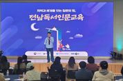 (아름다운교육신문) 전라남도교육청은 27일 청사 대회의실에서 학부모 대상 ‘2025 찾아가는 교육정책 서비스’를 열고, ‘독서인문교육’을 주제로 정책과 현장 사례를 공유했다. 이번 행사는 교육정책에 대한 학부모들의 이해를 높이고 교육 현장과 소통하기 위해 마련됐으며, EBSi 유튜브 채널에 실시간 중계를 진행해 보다 많은 학부모들이 참여할 수 있도록 했다. 먼저 교육부 학부모정책과 곽명철 연구사가 ‘학부모를 위한 독서교육’을 주제로 정부에서 추진하고 있는 정책을 안내했다. 이어 전라남도교육청 독서인문교육팀 유동춘 장학사가 도교육청의 전남독서인문학교 운영 사례를 소개했다. 또, 개그맨에서 유명 작가로 변신한 고명환씨는 ‘고전이 답했다’를 주제로 심도있는 특강을 진행해 참석한 학부모들의 큰 호응을 받았다. 특강에 이어 열린 토크콘서트에는 곽명철 연구사, 유동춘 장학사, 고명환 씨가 패널로 참여했다. 학부모들은 패널들과 자유롭게 의견을 주고받으며 독서인문교육의 방향과 가정에서의 실천 방안을 함께 모색했다. 김대중 교육감은 “전남독서인문교육을 통해 학생들이 책을 기반으