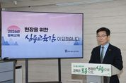 (아름다운교육신문) 윤건영 충청북도교육감은 29일, 신년기자회견을 열고 “2026년에는 단단해진 실력의 토대 위에 실용과 포용이라는 두 개의 돛을 달고 충북교육의 대전환을 이루겠다.”라며, 새해 정책 방향을 밝혔다. Ⅰ. 실용으로 삶에 힘이 되는 길을 열겠습니다. 윤건영 교육감은 취임때부터 지금까지 현장의 문제는 현장에 답이 있다는 '현문현답'의 실용적 관점으로 정책을 추진했다며, 단순한 현장 방문이 아닌 실제 삶의 현장에서 찾으려 했던 실용적 관점이라고 말했다. 이어, 충북의 실용교육은 지식이 교실의 문을 넘어, 학생 각자가 저마다의 삶의 나침반을 가지고 시행착오를 겪더라도 다시 방향을 잡고 나아갈 수 있도록 자신의 길을 찾아가는 여정이라고 말했다. 또한, 경험을 강조한 존 듀이의 실용주의와 실사구시를 강조한 다산 정약용의 사상처럼, 교육이 삶의 문제를 해결하는 힘이 되어야 한다는 문제의식과 맞닿아 있다고 설명했다. 이에, 실용을 위한 정책 방향으로 ▲일상을 창작과 표현의 무대로 확대 ▲다채움을 통한 AI 역량 집중지원 ▲소리뜻 한자교육 도입 ▲진학과 취업 지원 강화 등을 밝혔다.