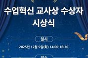 (아름다운교육신문) 교육부는 한국교육방송공사(사장 김유열)와 함께 12월 9일, 서울 동대문 노보텔 앰배서더에서 수상자와 가족 등이 참석한 가운데 2025년 '올해의 수업 혁신 교사상' 시상식을 개최한다. 지난해에 이어 두 번째를 맞이한 '올해의 수업 혁신 교사상'은 학교 현장에서 자발적인 수업 나눔과 혁신에 매진하는 초・중등학교 선생님들의 노력을 널리 알리고자 시작됐다. 수상자에게는 교육부 장관 표창이 수여되며, 특전으로는 상금 100만 원과 해외 선진사례 연수에 참여하는 기회가 주어진다. 올해는 학교장・동료 교사 추천으로 전국에서 358명의 초・중등학교 교사들이 지원했으며, 교육청・교육부의 심사와 현장 실사를 거쳐 초등 54명과 중등 46명 등 총 100명의 수상자가 선정됐다. 이번 시상식은 학생 참여 중심 수업 등 수업 방법 변화를 주도한 교사들의 성과를 되돌아보며, 수업 혁신 문화를 동료 교사와 지역 학교에 홍보・확산할 수 있는 자리로 마련됐다. 시상 이후에는 대표 수상자들이 그간 학교 현장에서 실천해 온 주요 수업 혁신 사례들을 소개하는 시간이 이어진다. 한편, 우수 사례 확산을 위해 2